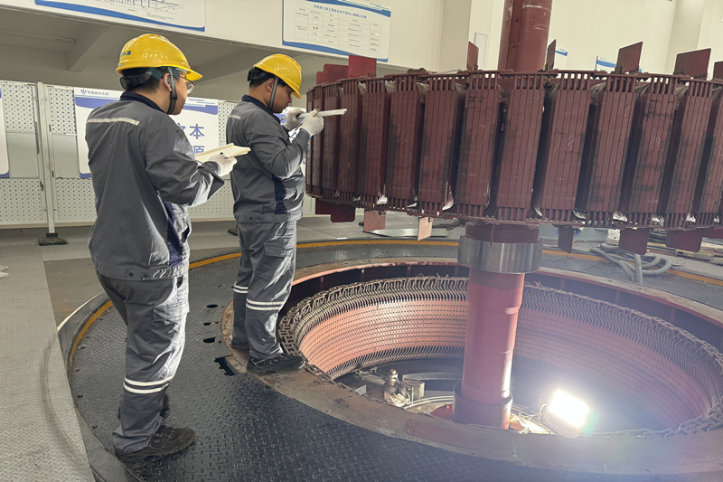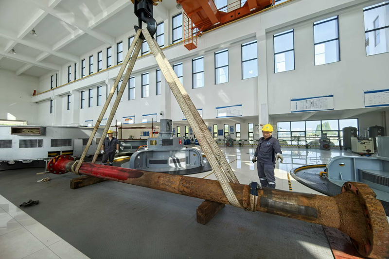本次大修關鍵任務之一,是將原有的液壓調節器升級改造為新型的“上置式同步液壓調節器”。新系統高度集成化,優化了空間布局,解決了以往受油器漏油、保壓難等問題,讓后期維護時的部件更換效率提升50%。在調整機組軸線擺度時,成員趴在滾燙的機座旁進行反復校準,面對葉輪外殼的氣蝕傷痕,他們一寸寸精心打磨、修補,直到金屬表面恢復平滑;精準微調墊片厚度,將測量精度嚴格控制在0.01mm;檢測導葉體水平度時,水平儀氣泡被穩穩的停在0.02mm精度范圍內。在關鍵工序驗收環節,管理和施工雙方共同到場、聯合驗收,對每道工序質量標準進行嚴格確認,為后期維護和安全運行提供更有力的保障。